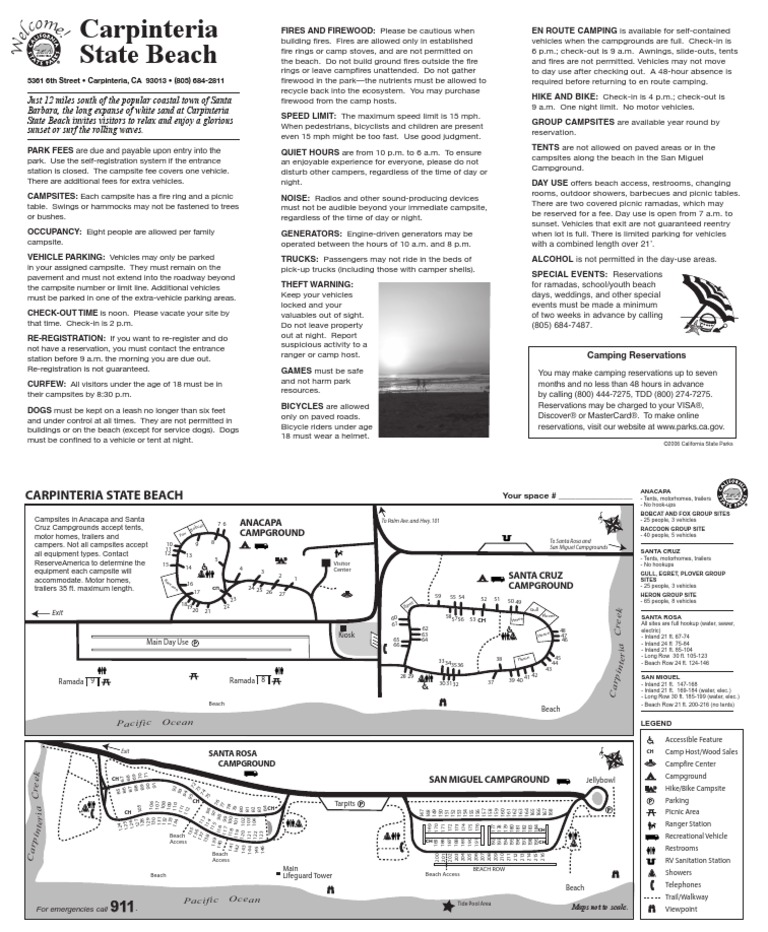 Carpinteria State Beach Campground Map Campsite Camping