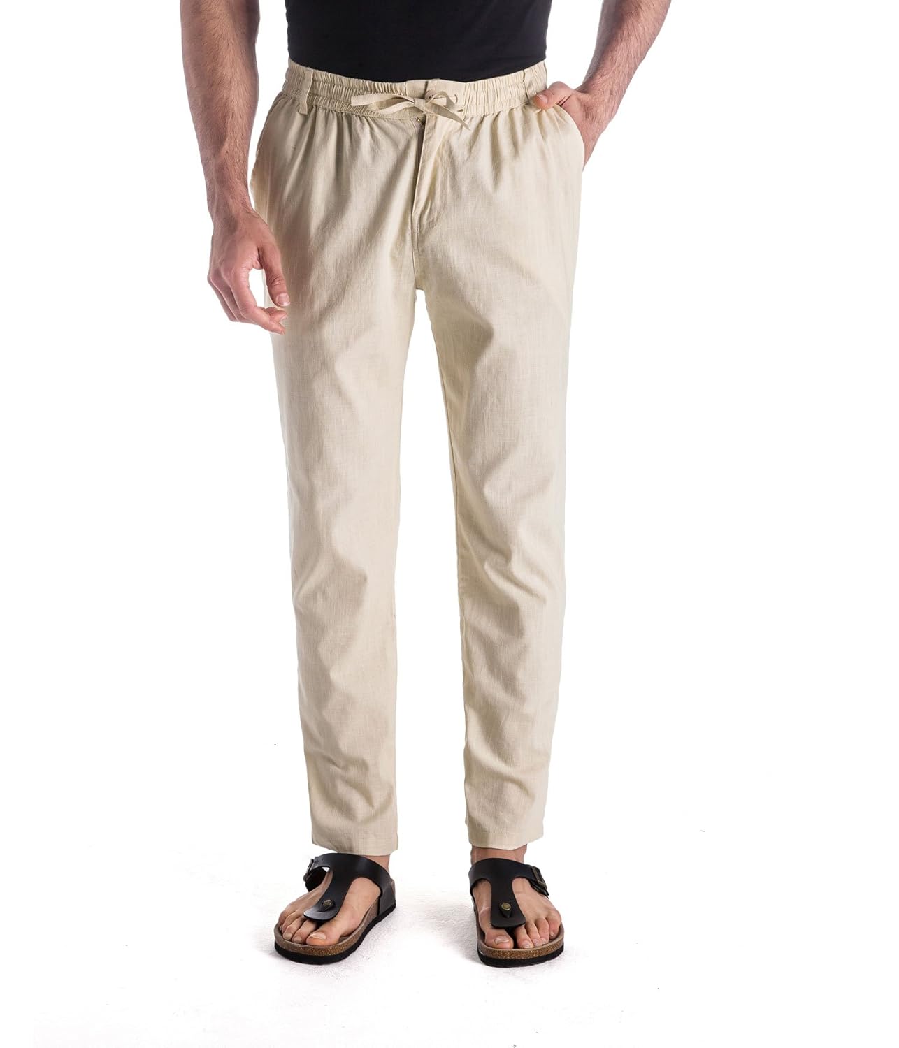 Drawstring Pants For Men Linen Look Runs One Size Small Natural Color